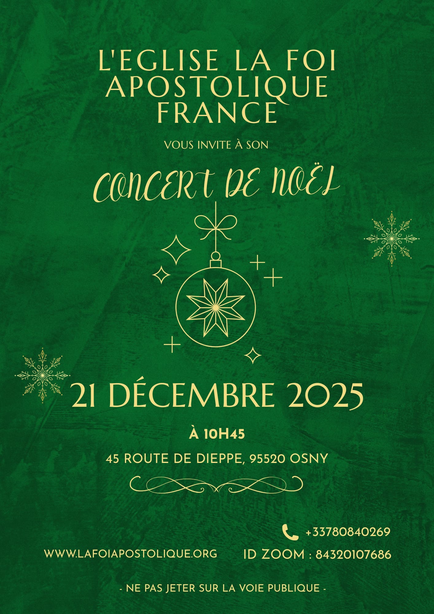 Bonjour frères et sœurs, L’ÉGLISE LA FOI APOSTOLIQUE FRANCE vous invite à son Concert de Noël, qui aura lieu le […]